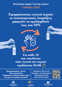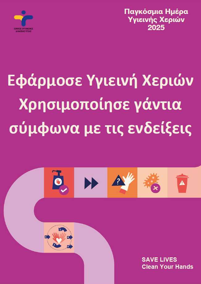 Ο ΕΟΔΥ συμμετέχει στον εορτασμό της Παγκόσμιας Ημέρας της Υγιεινής Χεριών με την προετοιμασία και διάθεση ενημερωτικού υλικού.